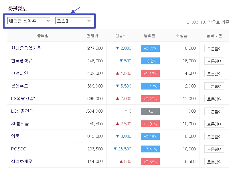 배당금 높은 주식 순위 알아보는 법 (0) | 2021.03.10 |