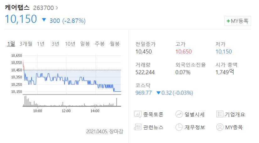 백신여권 관련주 첫 번째로 알아본 건 케어랩스입니다.