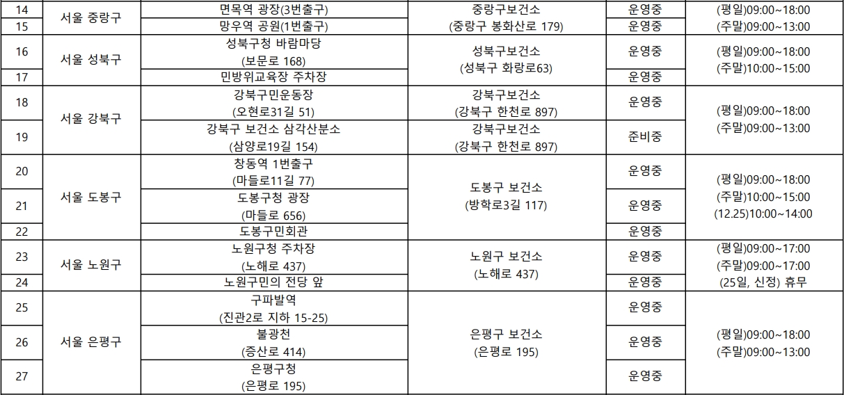 2020년 12월 25일자로 최근 업데이트된 수도권 임시선별진료소 위치를 알아보겠습니다.