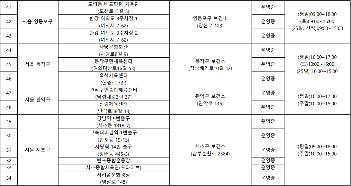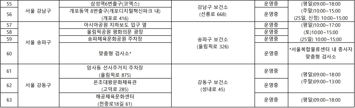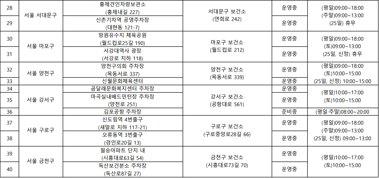 수도권 임시선별진료소 운영 위치 (서울)