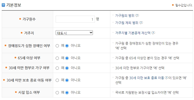 2021년 기초생활수급자 자격요건, 자격 모의계산 방법