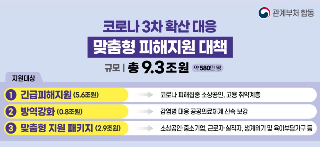 어제 정부에서 정부 ‘코로나 3차 확산에 따른 맞춤형 피해 대책’ 발표했는데요.