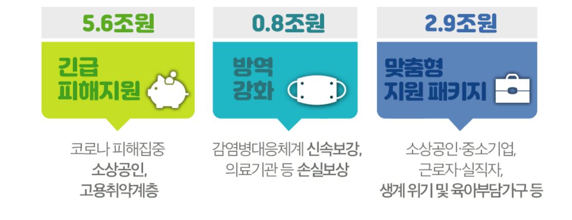 2차 재난지원금때보다 많졌아졌고, 기존에 예상했던 4조억~ 5조억 원 원보다 많은 금액이 3차 재난지원금으로 편성되었습니다.